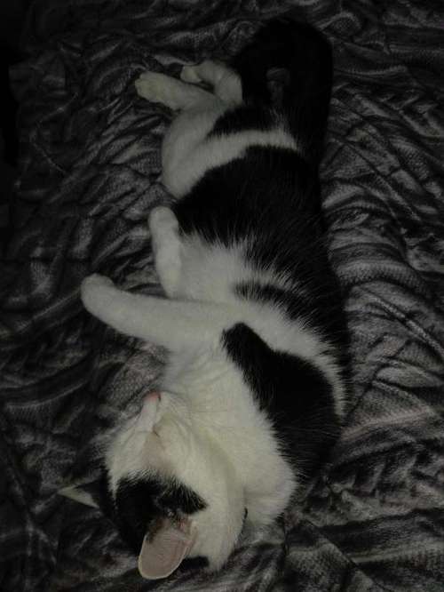 Pienikokoinen, musta-valkea todella ihmisystävällinen kissa.