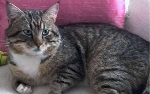 Helsingin Mellunkylästä karkasi uudestaan iso harmaa-, ruskea-, mustaraidallinen leikkaamaton kollikissa. Kaikki tassut valkoiset. Kintereet mustat. Rinnassa valkoinen merkki.