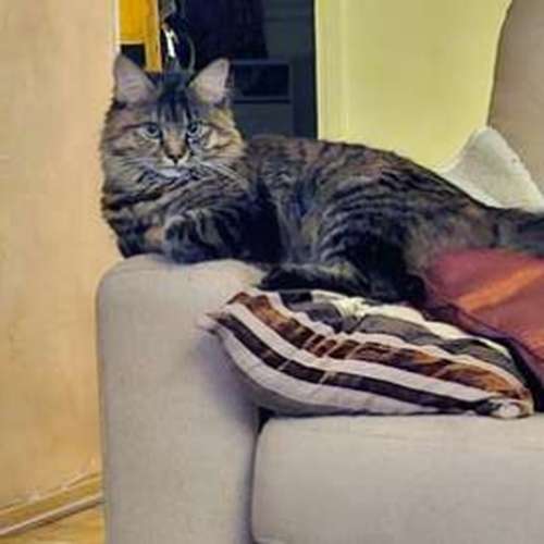 Pitkäkarvainen raidallinen leikattu ja sirutettu tyttökissa kadoksissa Hgissä. Joko piileksii sisällä tai on päässyt livahtamaan ulos Oulunkylässä.