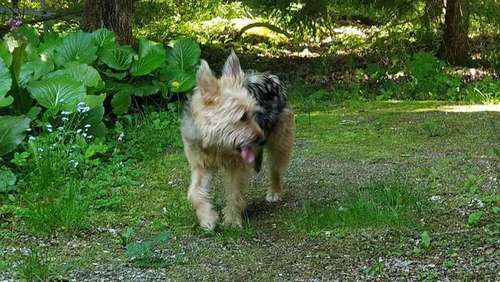 Keskikokoisesta, ruskeaturkkisesta ja pystykorvaisesta koirasta