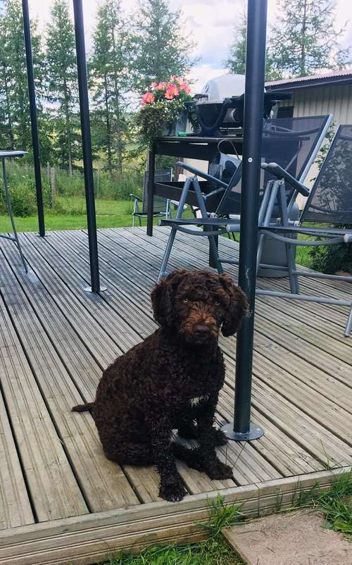 Tumman ruskea espanjanvesikoira karannut Mellunmäessä 16:50. Säikähti ja lähti karkuun. Tyttö jolla portugalinvesikoira etsimässä.