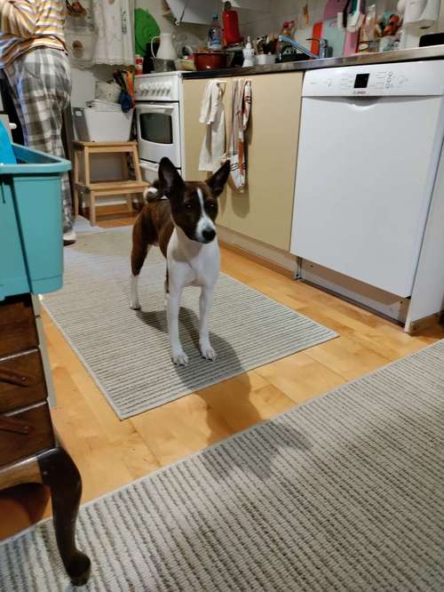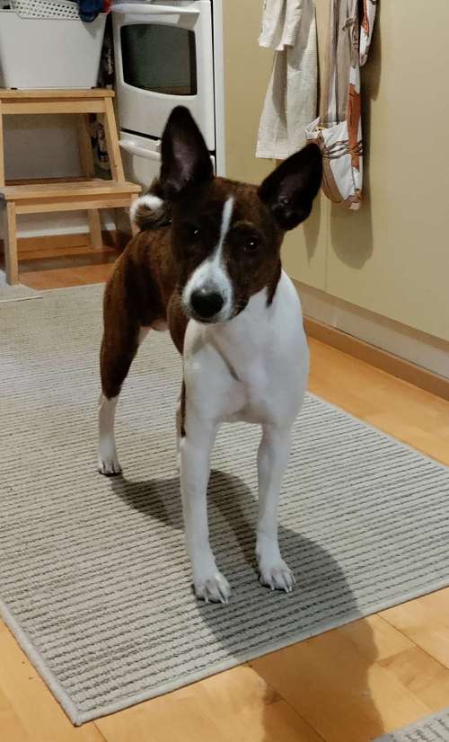 Noin klo 14.30 katosi pieni tumma raidallinen basenji uros Hakuninmaalla Helsingissä. Sillä on oranssit valjaat.