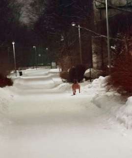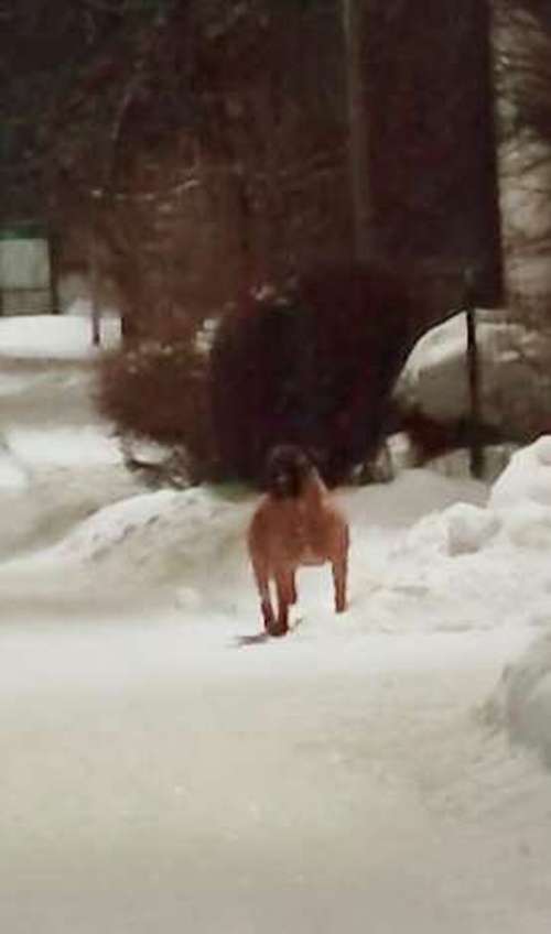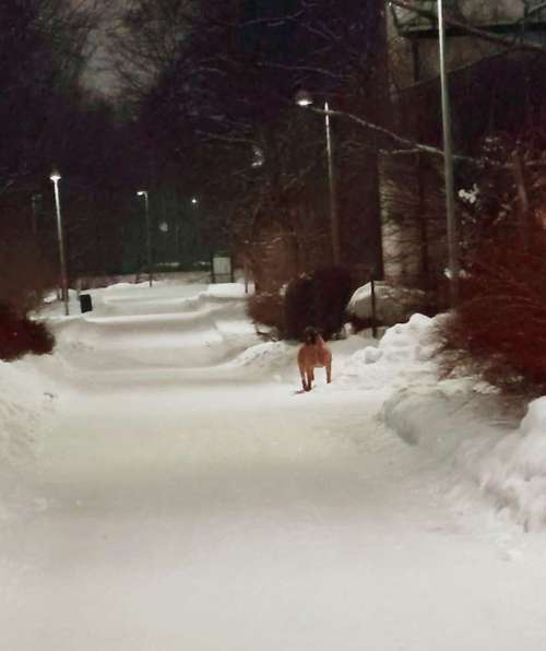 Trumpettitie 6 /Trumpettipolun (Kannelmäki, Helsinki) luona nähty bullmastiffi vaaleanruskea/ruskea 25.1.26 klo 20.30.