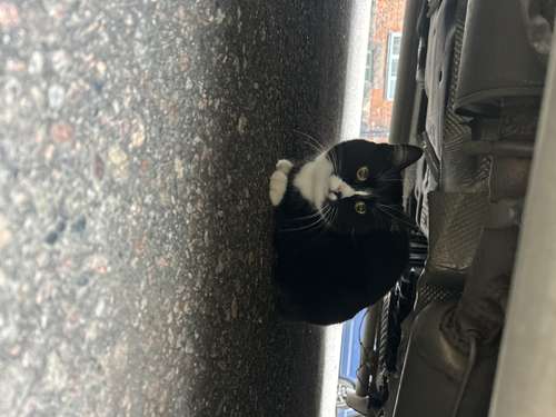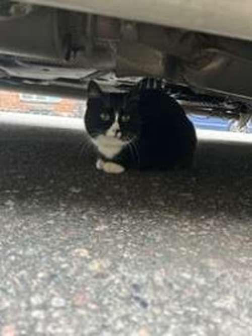 Musta kissa nähty Porvoonkadulla pakettiauton alla.