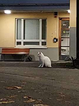 Ruskeasuolla nähty valkoinen kissa 20.10. klo 18:30. Ei pantaa. Valterin takapihalla. Todennäköisesti sama kissa kuin ilmoituksessa id: 81593