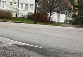 Nähty musta kissa Torpparinmäen Sihteerintielle menossa likellä K-Markettia klo 11.46