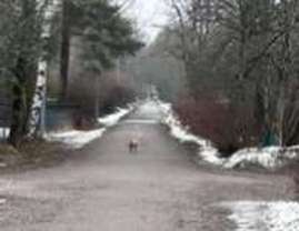 Konalassa Vanhalla Hämeenkyläntiellä Hilapellon kentän lähellä nähty valko-oranssi koira klo 16.15. Päällä oranssit valjaat.