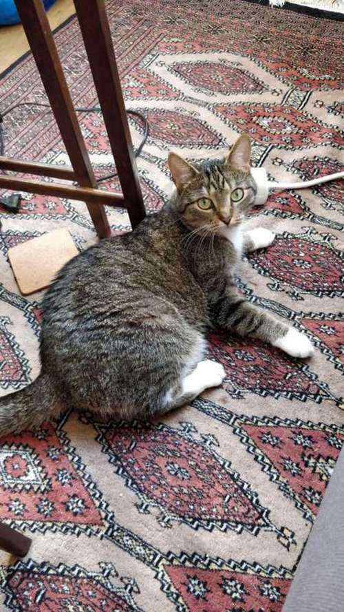 Raidallinen tyttökissa karannut viime yönä. Saattaa olla arka aluksi eli saa houkutella herkuilla kiinniottamisen helpottamiseksi. Kissalla on siru.