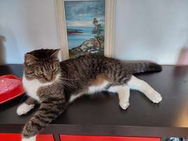Keravan Killassa kotiutui 25.12.2025 karannut raidallinen valkotassuinen kissa. Kiitos Etsijäkoiraliitto!