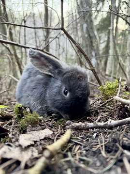 Nukarinkoskella harmaa pupu. Tuli lähelle, muttei antanut ottaa kiinni ja pinkoi lopulta kauemmas.