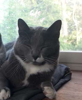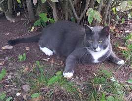 Sipoo Martinkylä. Kadonnut harmaa n. 6kg leikattu ja sirutettu uroskissa. Tunnusmerkkinä rinnassa valkoinen "kauluri", josta lähtee raita vatsaan ja vasen viiksityyny valkoinen, valkoiset tassut. Utelias, arka ja ystävällinen.