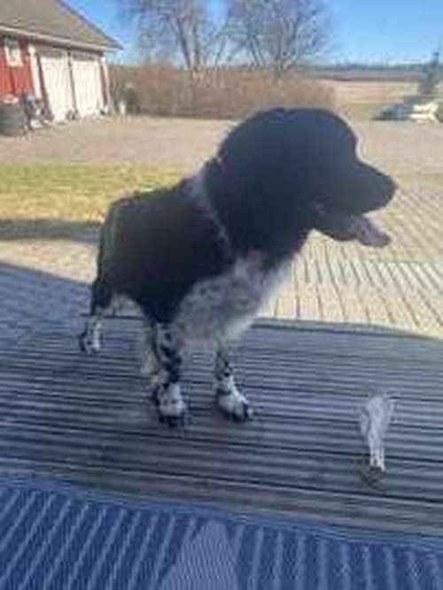 Nahkelassa kävi koira pihassa leikkimässä meidän koirien kanssa. Ei ollut kaulapantaa, joten en voinut soittaa kenellekään.