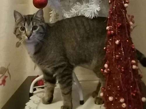Harmaankirjava naaraskissa,valkoinen kaula.