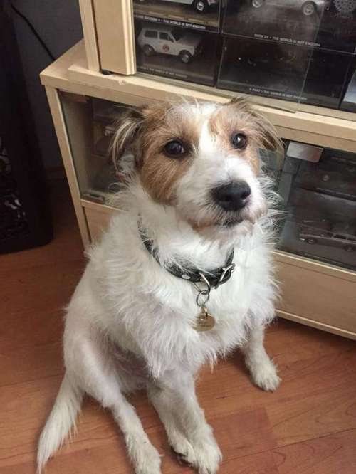 Kadonnut klo 9 uroskoira, musta panta, Jack Russelin terrieri normaalia korkeampi n.40cm