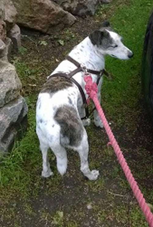 valkoinen koira merkein