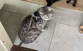 Kadonnut Piispanristillä, Kaarinassa 5.9.2021 alkuillasta kuvan kissa. Karannut pihalta valjaista pelästyttyään kovaa ääntä. Kyseessä sisäkissa joka ei ole tottunut ulkona olemiseen (ei tuttua aluetta). Luonteeltaan kiltti, todella arka/ujo. Ei pantaa, leikattu tyttökissa.