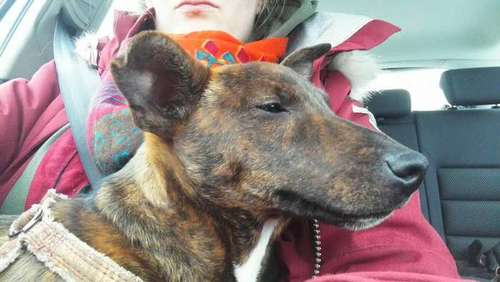 Karkasi kesken ulkoilun omalta pihalta. Pieni 5kk vanha pentu.