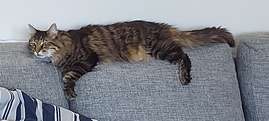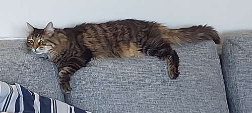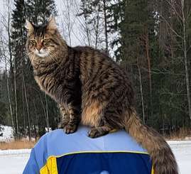 Iso 6 kg kollikissa, 13-vuotias. Hyväkuntoinen, pitkäkarvainen, paksu häntä.