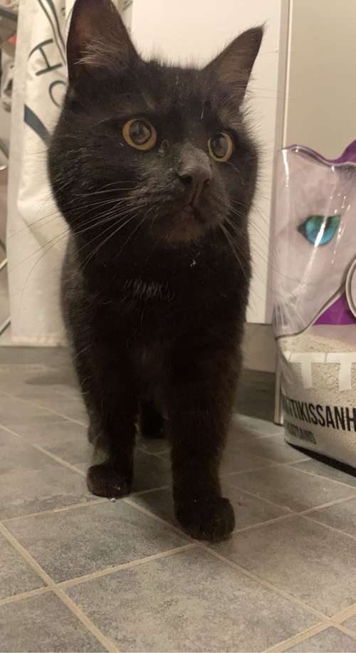 Petäsmäen alueella Raisiossa eilen yöllä karannut musta naaraskissa, tosi ihmisrakas ja hieman arka luonteeltaan